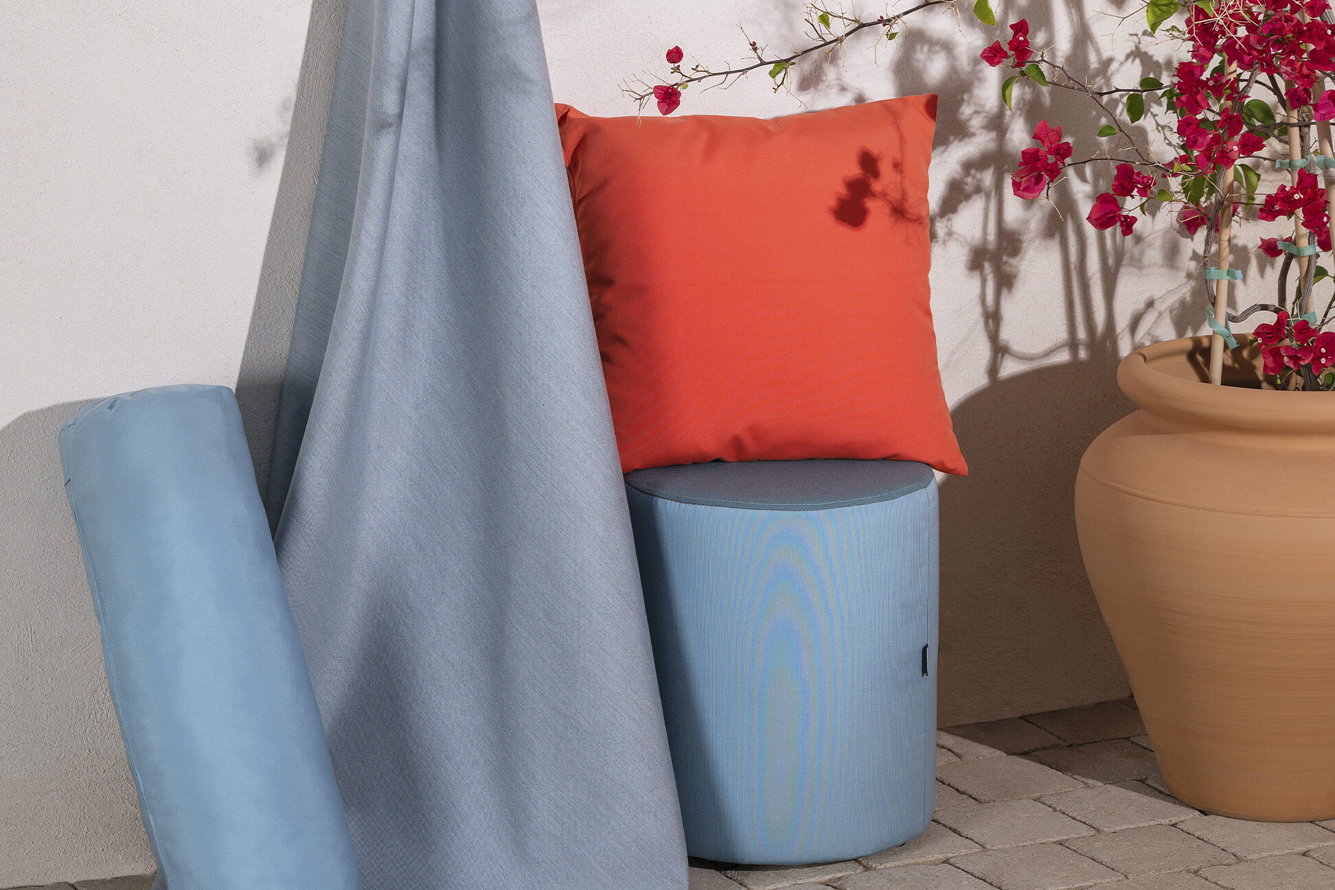 每根线都编织出新的表达。精心挑选的 Agora® Armonias 色调将柔和的粉色与深沉的纯色相结合,为任何户外空间带来一丝精致感。Ritmo 和 Ottoman 两种新纹理与 Liso 和 Panama 系列焕然一新的色调相得益彰,为优雅的搭配提供了无限可能。
